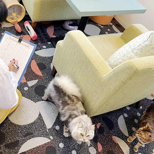 見回り時だけでなく、他の業務中も集中監視システムを活用して猫ちゃんの様子を確認します。