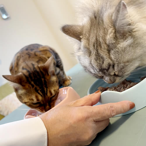 猫ホテル bellに滞在中の猫ちゃんの一日の一例をご紹介します。モデルは弊社の愛猫"ベル"と"にゃん"です。